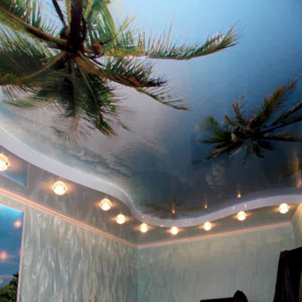 Где уместен монтаж потолочных конструкций с изображениями? Где угодно, главное, чтобы вписывался в стиль интерьера. Это может быть гостиная, спальня, детская комната. В некоторых случаях удачный рисунок способен создавать оптические иллюзии - небесную гладь, пронзенную лучами солнца листву и т.д.
