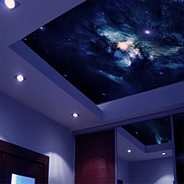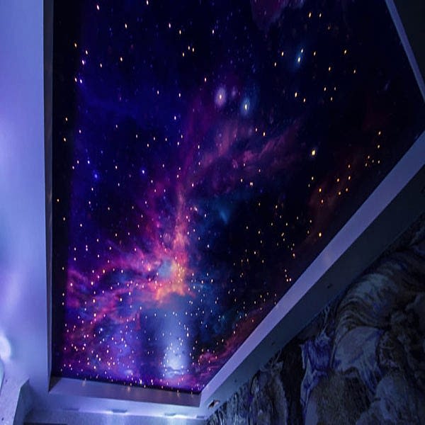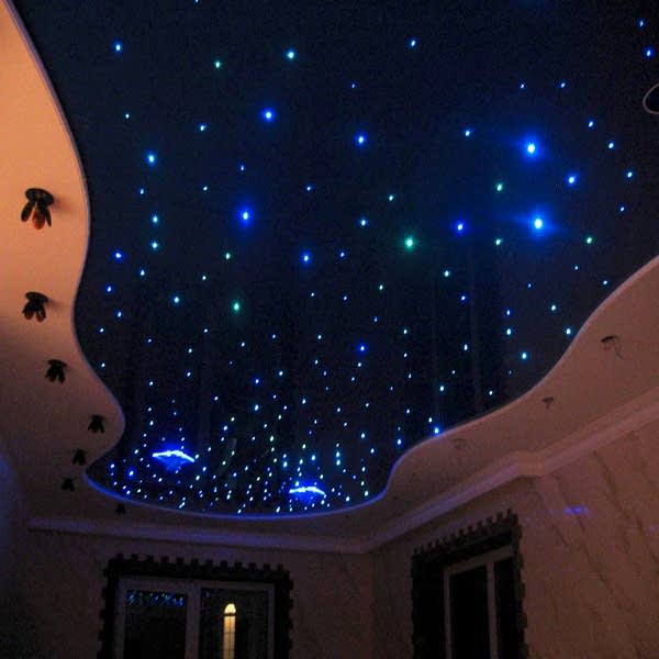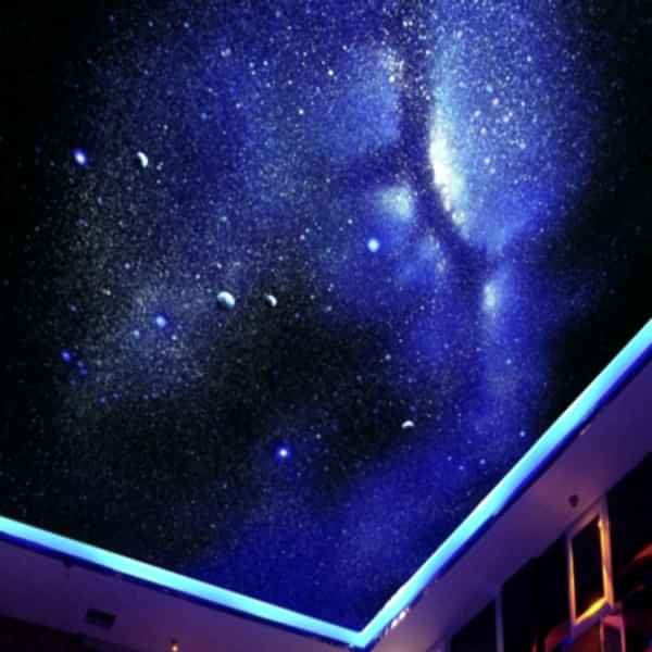 Звездное небо - это лучший способ создать романтику в условиях домашнего уюта. Звездное небо есть двух видов - созданное с помощью оптических волокон и из камней Swarowski. Первый вариант, более «Pin Up» и бюджетный, и в большей степени похож на природное звездное небо; оптические волокна разбрасывают по натяжному полотну хаотично и закрепляют. При втором варианте в роли звезд выступают кристаллы Swarowski. Проходя через них, свет играет невероятным спектром цветов. Выглядит, конечно, эффектно.