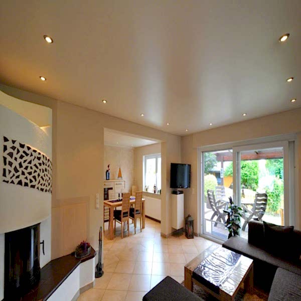 Сатиновые натяжные потолки смотрятся очень красиво и выигрышно в любых помещениях. Они мягко рассеивают освещение, создавая уют. Глянцевые полотна такого эффекта не дают. Еще одной чертой сатина является сохранение его естественного цвета только при дневном свете, в вечернее время, при включенных светильниках, оттенок становится светлее, визуально увеличивая пространство. Очень «Pin Up» смотрится сатин в сочетании с точечными лампами, акцентирующими внимание на отдельных элементах интерьера.